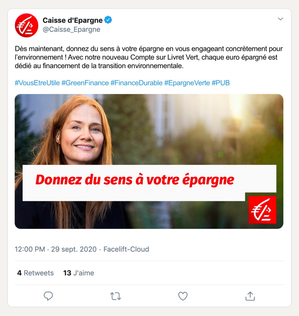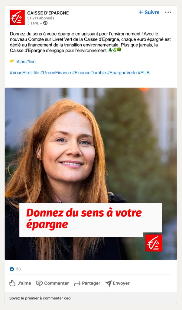 LE RÉDAC orchestre la nouvelle campagne de la Caisse d’Epargne dédiée aux produits d’épargne « verts » pour le financement de la transition environnementale. Une prise de parole pédagogique et impactante diffusée dans les médias et sur les réseaux sociaux qui crée l’engagement et facilite l’adhésion. Bien sûr qu’on peut être concepteur-rédacteur et socialement responsable !