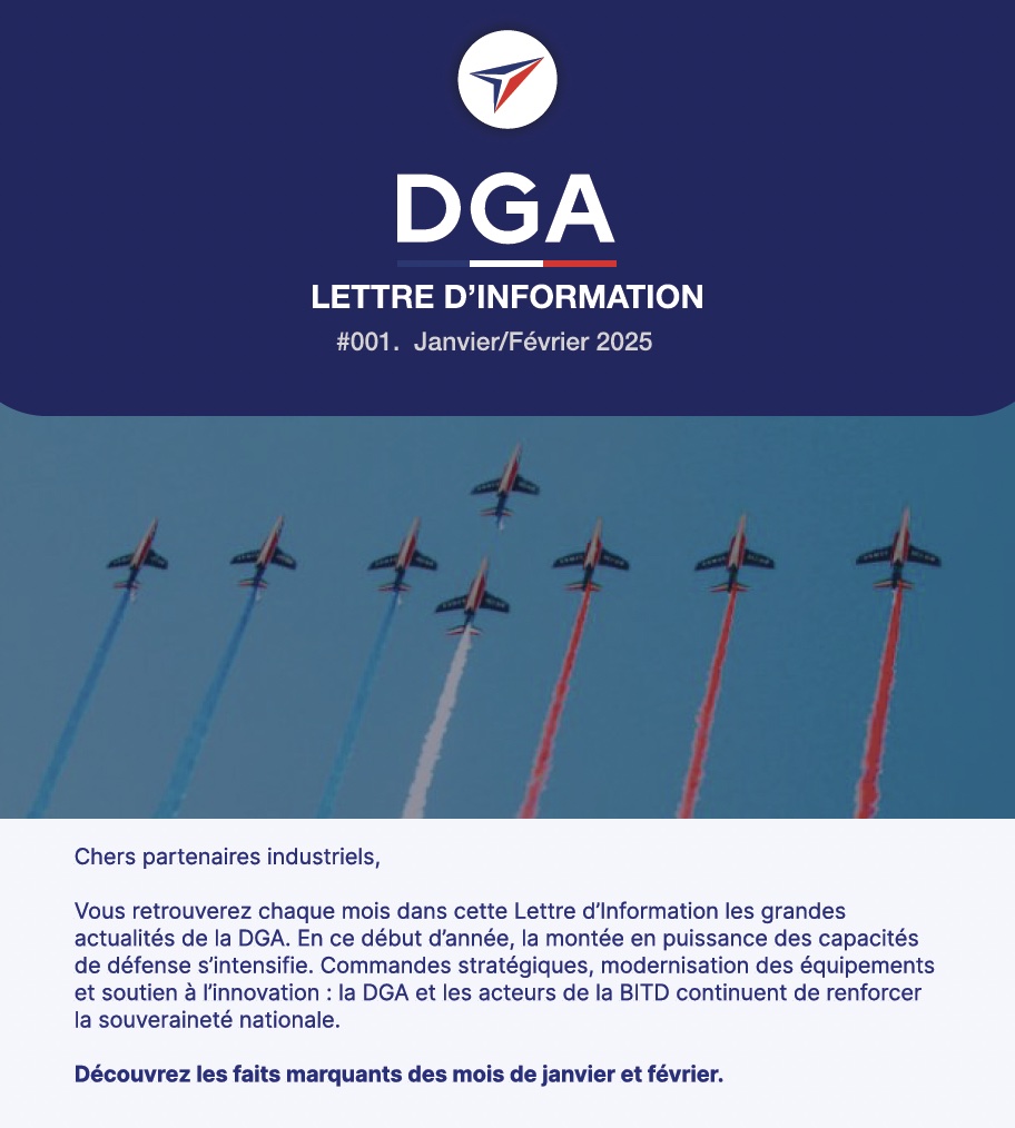 Même en temps de paix, mieux vaut être bien équipé, car on ne sait jamais. La Direction Générale de l’Armement, direction du Ministère français des armées, a pour mission principale d’équiper les forces armées avec les meilleurs matériels militaires et les meilleures technologies. Elle a demandé au RÉDAC de prendre en charge la rédaction de sa newsletter mensuelle, déclinée pour ses différents publics : forces armées en interne, industriels et institutionnels. LE RÉDAC a rejoint le combat en visant juste afin de toucher chaque cible.